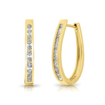 Round Diamond Hoop Earrings in 10K Yellow Gold 0.50ct, Color-IJ, Clarity-I2. These gorgeous diamond hoop earrings feature round diamonds in a 10k white gold setting. The total carat weight of the diamonds is 0.50ct. These earrings make for a stunning addition.