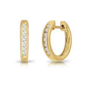 Enter a world of timeless romance with these exquisite Diamond Hoop Earrings, delicately crafted in captivating 10K Yellow Gold. Adorned with a captivating ensemble of shimmering diamonds totaling 0.25 carats, they symbolize the enduring bond of love. Envision the gentle sway of these hoops, each movement a graceful dance of passion and elegance. The diamonds, with their enchanting color grade of IJ and clarity of I2, radiate a soft, romantic glow, mirroring the depth of your affection. As you wear these earrings, let them be a testament to your unwavering commitment and the cherished moments you hold dear. Whether for a candlelit dinner or a moonlit stroll, let them serve as a beacon of love, guiding you through every enchanting moment. Embrace the magic of romance with every radiant sparkle of these exquisite earrings.