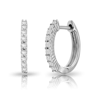 Envelop her in a timeless embrace with these Diamond Hoop Earrings in 10K White Gold. Crafted to capture the essence of eternal love, each delicate curve holds the sparkle of 0.20ct diamonds. In the gentle glow of white gold, these earrings become a symbol of the affection and devotion you share. The diamonds, with their Color-IJ and Clarity-I2, twinkle like celestial treasures, reflecting the depth of your connection. As she wears these hoops, let them whisper tales of cherished moments and enduring commitment. With every glint, let her heart be reminded of the everlasting bond you cherish, knowing that these Diamond Hoop Earrings are a shimmering tribute to your timeless love.