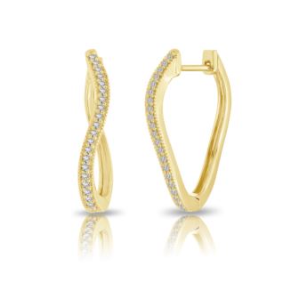 Grace her ears with the enchanting allure of these diamond hoop earrings, cradled in the tender embrace of 10K yellow gold. Each arc whispers tales of love, a delicate dance of affection that knows no bounds. Adorned with a celestial ensemble of diamonds totaling 0.20 carats, these earrings cast a soft, luminous glow, reflecting the depth of your devotion. Set in the captivating hues of IJ color and boasting the clarity of I2, each diamond embodies the essence of your bond, sparkling with every heartbeat. As she wears these exquisite hoops, let them be a symbol of your enduring commitment, a promise of forever etched in the timeless elegance of diamonds. Gift her not just jewelry, but a reflection of your everlasting love, destined to illuminate her path with every gentle sway.
