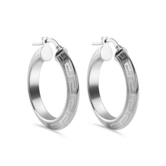 Greek Key Latch Earrings in Rhodium Plating over 925 Sterling Silver - 20MM