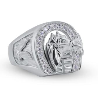 Men's Horse Shoe CZ Ring in Nickel Free Rhodium Plating over 925 Sterling Silver Size-11