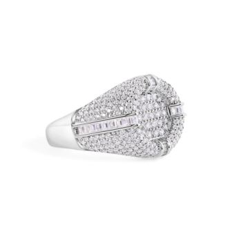 Men's 17.2MM Round Recessed Top Baguette cut Clear CZ Ring in Rhodium Plating over 925 Sterling Silver Size-11