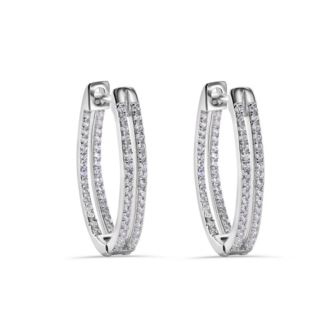 Pave Double Clear CZ Hoop Earrings in Rhodium Plating over 925 Sterling Silver