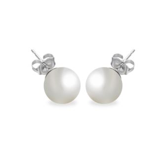 Elevate your elegance with these Rhodium Plated Pearl Stud Earrings, delicately designed in 925 Sterling Silver. These timeless studs showcase the lustrous beauty of pearls, creating a refined accessory that embodies sophistication and grace, making them a perfect complement to any ensemble. Rhodium Plated Pearl Stud Earrings in 925 Sterling Silver.