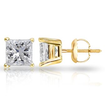 Princess cut 10K Yellow Gold Stud Earrings with 925 Sterling Silver Screwback 0.12ct, Color-IJ, Clarity-SI1 SI2