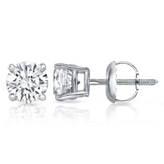 Add timeless elegance to your jewelry collection with these certified round diamond stud earrings. Crafted in 14K white gold, the earrings feature a total diamond weight of 0.60 carats, showcasing round brilliant-cut diamonds with IJ color and I1 clarity. Each diamond is securely set in a classic four-prong setting and finished with comfortable screwback posts for a secure and stylish fit. These earrings come beautifully packaged in a premium gift box and include a certificate of authenticity-making them a thoughtful and dazzling gift for any special occasion.