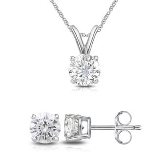 2.25ct Round Lab Grown Diamond Pendant-Earrings Set with chain in 14K White Gold Color-FG, Clarity-VS1 VS2