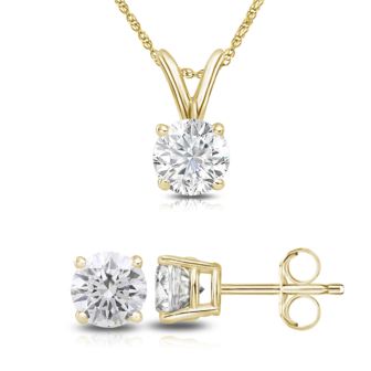 3.00ct Round Lab Grown Diamond Pendant-Earrings Set with chain in 14K Yellow Gold Color-FG, Clarity-VS1 VS2