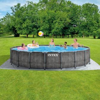 Transform your backyard into a stylish oasis with the Intex Greywood Prism Frame™ 18' × 48" pool. Featuring a wood-grain patterned frame, strong steel supports with easy-connect T-joints, and a puncture-resistant 3-ply liner, this set delivers both beauty and durability. It includes a high-capacity filter pump, ladder, ground cloth, and cover-ready to fill within an hour for all-day family fun.