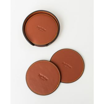 Our sophisticated coaster set in smooth leather beautifully protects surfaces for morning coffee, afternoon tea or cocktail hour.
