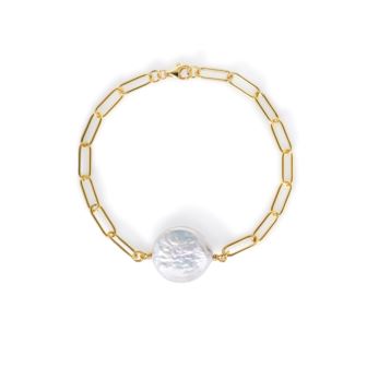Embrace modern elegance with our Circuar Freshwater Baroque Pearl Bracelet. A lustrous, naturally unique freshwater baroque pearl is gracefully featured on a chic 18k yellow gold-plated sterling silver paperclip chain. This versatile piece perfectly balances casual sophistication with timeless charm, making it an essential addition for effortless style.
