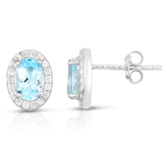Classic and pretty blue topaz earrings. 6x4mm oval blue topaz set in sterling silver and surrounded by white topaz for extra sparkle.