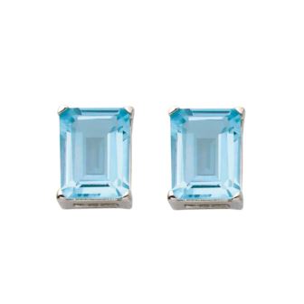 The famous emerald cut, the tantalizing blue topaz. Classic 7x5mm emerald cut blue topaz stud earrings, sterling silver. Matches well with necklace JN245-BT and bracelet JB1497.