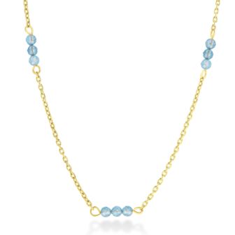 A necklace where the glimmer of gold balances the luster of blue topaz. Take these blue topaz beads out for a spin on a 14k yellow gold vermeil chain that goes with everything. 2.5-3mm blue topaz bead stations. 14k yellow gold vermeil. 18" in length. Secured to the neck with a lobster claw clasp.