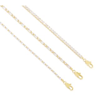 Upgrade your stack with a flick of the wrist! Classic tennis bracelet set with cubic zirconia's that speaks to ultimate decadence - on and off the court. Rhodium plated brass. 7"+1" 3 ring extenders. Secured to the wrist with lobster claw clasps.