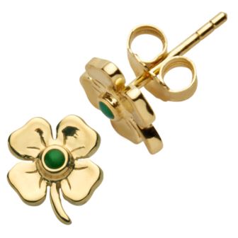 Pretty Clover 14k Yellow Gold Vermeil (3 microns thick of 14k yellow gold coated on a sterling silver base) studs with green enamel pistols. Pierced earrings only