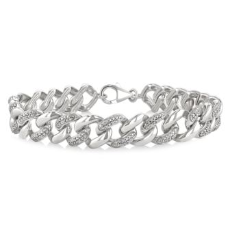 Make a striking statement with this 7" sterling silver Cuban link bracelet, where bold design meets refined brilliance. Alternating polished and diamond-accented links shimmer with .15twt round-cut diamonds, offering a perfect balance of strength and sophistication. Finished in radiant rhodium and secured with a lobster clasp, this bracelet embodies modern luxury-ideal for elevating everyday looks or adding edge to evening style.