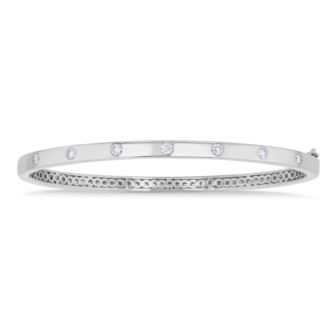 Sophisticated simplicity defines this 14k white gold bangle, accented with seven flush-set round diamonds (.40twt) for a refined sparkle. Designed with a secure press-lock clasp, it offers both elegance and ease of wear. A modern essential, this bangle transitions seamlessly from day to night, embodying understated luxury.Also available in yellow gold.