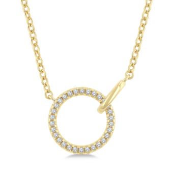 Crafted in 10k yellow gold, this interlocked circle necklace embodies love, unity, and continuity. One polished gold circle links seamlessly with a diamond-studded counterpart, shimmering with 30 sparkling diamonds (.10twt). Suspended from an adjustable 18" cable chain, this elegant pendant is both meaningful and versatile-a timeless treasure to celebrate enduring bonds.
