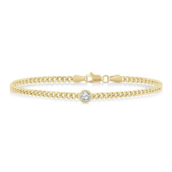 Effortlessly chic, this 14k yellow gold bracelet features a bezel-set round-cut diamond for modern appeal. The .25twt diamond radiates understated brilliance, balancing strength with refined simplicity. A versatile piece that elevates any look, this 7" bracelet is a timeless expression of contemporary elegance.