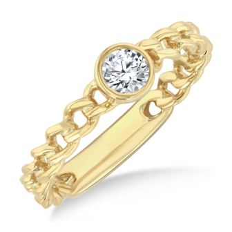 Bold yet refined, this 14k yellow gold curb link ring reimagines timeless luxury. Anchored by a radiant .20ct round-cut diamond, its sleek geometry contrasts beautifully with the fluid strength of the gold links. Both striking and versatile, it's a piece that speaks to confidence, modernity, and enduring elegance-perfect as a statement ring or a distinctive addition to your everyday collection.