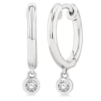 Simple, stunning and dazzling - like you! These beautiful huggie hoop earrings are crafted in 10k white gold with .10twt round brilliant cut diamonds.