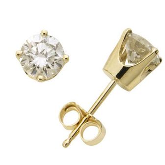 Simple, stunning and dazzling - just like you. Classic diamond solitaire earrings, .15twt round brilliant cut diamonds, 14k yellow gold, heavy friction posts for added security. Matching necklace JBSP304 available.