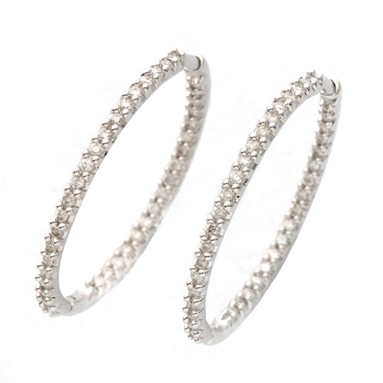 Nothing but glamour and glitz, from the inside out. Stunning 25mm inside-out diamond hoops, .50twt round brilliant cut diamonds, 14k white gold.