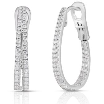 Discover elegance redefined with our double row diamond hoop earrings, crafted from lustrous 14k white gold that guarantees to stand the test of time. Encrusted with striking white diamonds, these earrings sparkle at every angle, promising to captivate attention and add a touch of sophistication to any ensemble. Designed with a secure omega closure, they offer both comfort and peace of mind, ensuring these exquisite pieces stay perfectly in place.14k white gold,132 diamonds, .64twt diamonds. Weight: 4.03 grams"