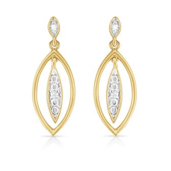 Turn over a new leaf and see where life takes you. Beautiful diamond leaf earrings, .04twt round diamonds, sterling silver with yellow gold overlay. Matches well with bracelet JB677-Y and necklace JN677-Y.