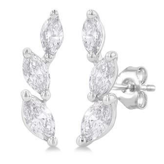 Sleek and contemporary, these 14k white gold ear climbers feature a graceful arc of three graduated marquise-cut diamonds. With .33twt of radiant sparkle, their elegant design flows naturally along the ear, blending modern sophistication with timeless brilliance. Secured with push-back clasps, these climbers are perfect for elevating both everyday looks and evening style.