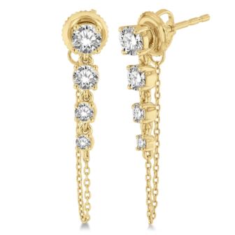 Four graduated round brilliant cut diamonds linked together in a dramatic 14k yellow gold setting that is both modern and romantic with a draped chain. Express your style authentically everyday.1.00twt round cut diamonds