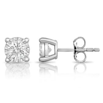 Shimmering diamond solitaire stud earrings, containing 1.00twt round brilliant cut diamonds set in sterling silver diamond cut settings. Beautiful and bright like you.