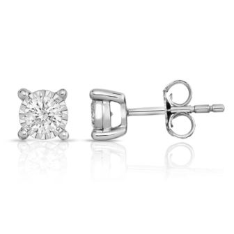 Shimmering diamond solitaire stud earrings, containing .50twt round brilliant cut diamonds set in sterling silver diamond cut settings. Beautiful and bright like you.