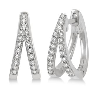 Crafted in rhodium-finished 10k white gold, these split huggie earrings dazzle with twin rows of pavé-set round cut diamonds, totaling .20twt. The graceful split design creates a captivating play of light, blending modern sophistication with timeless charm. Perfectly versatile, they bring elevated elegance to both everyday wear and special occasions.Also available in yellow gold.