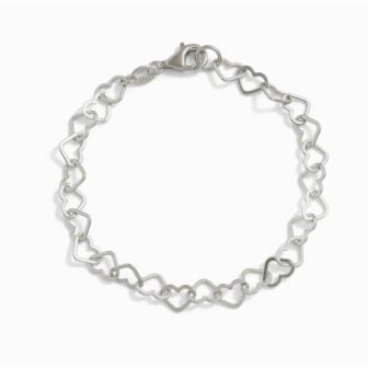 Infinitely wearable, this bracelet beckons and romance follows. Eternity linked hearts symbolize true love, fidelity and unity. 7.5" long with a lobster claw clasp. Sterling silver with yellow gold overlay bracelet.