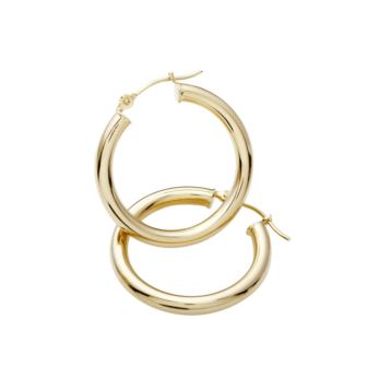 Fun, fashionable yellow gold hoop earrings. 14k yellow gold. 3 x 15mm classic bright hoops.