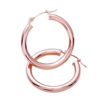 Fun, fashionable rose gold hoop earrings. 14k rose gold. 3 x 25mm classic bright hoops.