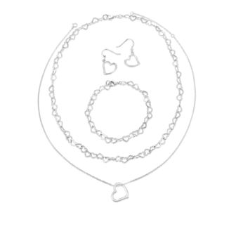 Elegant heart set. A Tiffany inspired floating heart necklace and matching earrings, and eternity heart chain bracelet and necklace set. A stylish everyday set that's the ideal gift for that special someone in your life. 7.5" bracelet and 18" necklaces. Sterling silver with yellow gold overlay.