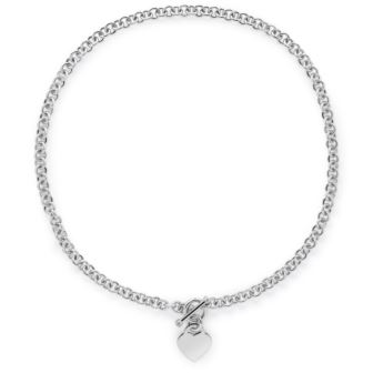 A modern love letter in sterling silver. This Tiffany-inspired toggle necklace features a bold 18" rounded link chain with a lustrous rhodium finish. At its center, a polished 6mm heart charm sways gracefully beneath a sleek toggle closure, radiating classic romance and contemporary edge. Perfect for layering or worn solo to steal the spotlight.