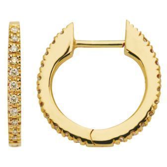 Elegant, striking 14k Yellow Gold Vermeil (3 microns thick of 14k yellow gold coated on a sterling silver base) hoops with diamonds throughout. .072twt diamonds. Pierced earrings only