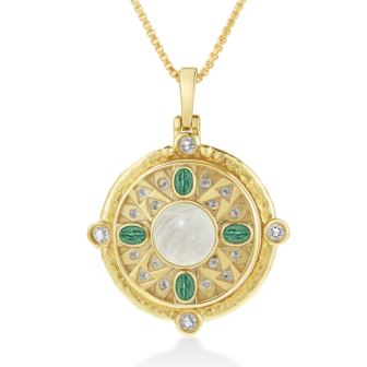 Keep your memories, hopes and wishes close at hand with this gorgeous locket pendant necklace. This locket is fully functioning, with a doorway to a deep inner chamber. With 2.5mm depth, the space is deep enough for a beloved photograph, a secret wish scrawled on notebook paper, small dried flower petals, or a scrap of a love letter. Set with dreamy moonstone, blue quartz and white topaz to amplify powers of manifestation, this locket acts as a portal to your deepest wishes. The 14k yellow gold vermeil locket is suspended from an 18" cable chain.