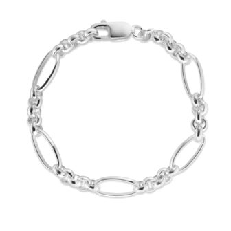 This sterling silver with yellow gold overlay chain bracelet brings classic style with a modern twist. Measuring 7.5" in length, it features alternating oval and round links for a bold yet refined look. Polished to a high shine, it's perfect for stacking or wearing solo as an everyday statement. Finished with a secure lobster clasp for easy wear.