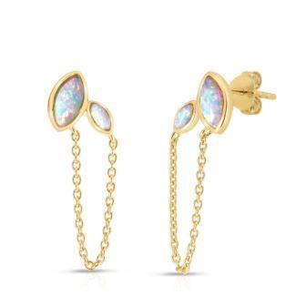 Designed in 14k yellow gold vermeil, this easy to wear pair of earrings feature pear-shaped opals that delight with their mesmerizing play of colors.