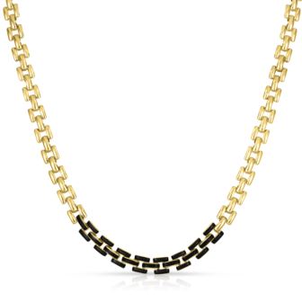 A throwback to the vibrant style of the 1970s. Large Panther links are forged in 14k yellow gold plated brass. These contemporary links join together to create this amazing 18" necklace that's further complimented by black enamel for extra sophistication.