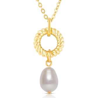 A pearl pendant necklace with a unique twist. Said to bring wisdom and knowledge, this handcrafted 9x8mm freshwater pearl charm lends your layers a distinctive finish. Sterling silver. The length of the necklace can be adjusted from 16" to 18". Style this elegant adjustable length necklace alone or as part of a chic layered necklace look.