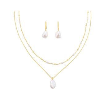 Each completely unique in shape and natural nuances, these Baroque pearl and seed pearl set will turn up the volume on any look. 8-9mm Baroque pearls and 2.5-3mm seed pearls. 18" necklaces.