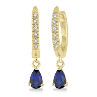 Made for every day, but designed to turn heads, these 10k yellow gold sapphire-adorned huggie earrings deliver an added dose of glamour. 5x3mm pear-shaped radiant sapphires in three-prong settings drop just below the diamond huggies (featuring .13twt round cut diamonds) for a look that's equal parts old Hollywood and modern glamour.