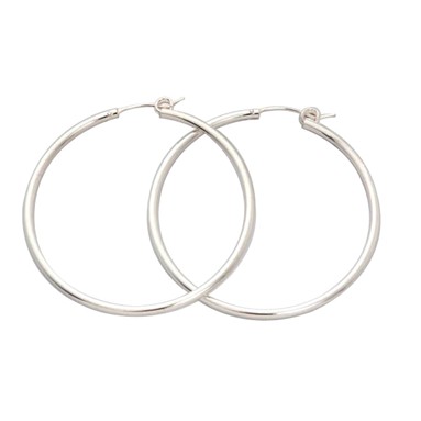 A throwback to the 80's is streamlined with symmetrical simplicity. Large sterling silver hoop earrings, 35mm.